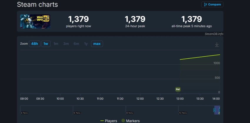 Пиковый онлайн Wall World 2 в Steam в момент написания новости составил 1379 человек. Это больше, чем у Beholder: Conductor (1348 игроков) и Beholder 3 (1023 игрока), но значительно меньше, чем у первой Wall World (4650 человек) или Beholder (7817 игроков). Вероятно, в ближайшие часы рост онлайна продолжится.