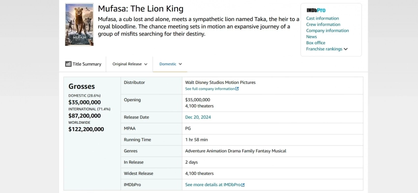 А вот «Муфаса: Король Лев» тем временем смог собрать в прокате США только 35 млн долларов. Прогнозы составляли 50 млн долларов.
