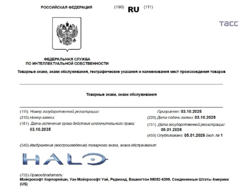 С данными Роспатента ознакомились в ТАСС. Заявки были поданы ещё в прошлом году, но регистрацию получили в январе 2026-го. Срок действия исключительных прав истекает 3 октября 2035 года.