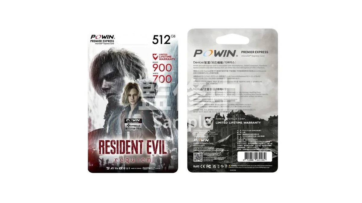 Обложка: скриншот Resident Evil RequiemКомпания Powin анонсировала microSD-карту объёмом в 512 ГБ, оформленную в стиле грядущей Resident Evil Requiem. На лицевой стороне упаковке изображены главные герои Грейс и Леон. На задней — разрушенный Раккун-Сити. На сам накопитель нанесён логотип Umbrella.