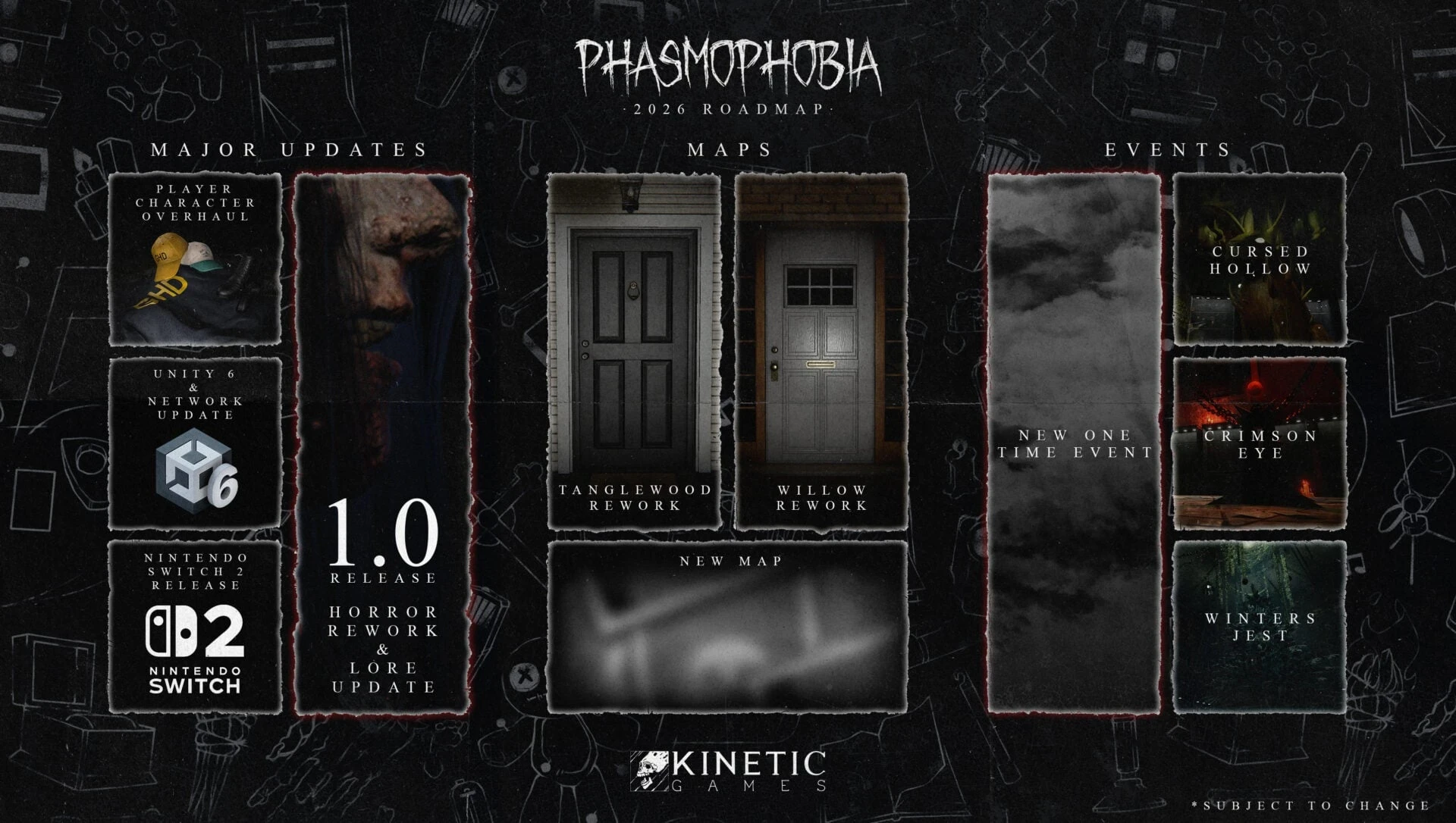 Вместе с выходом версии 1.0 выйдет и большое обновление Horror 2.0, включающее в себя новых призраков и дополнительные игровые механики. Последние, по заверениям создателей, призваны сделать геймплей более напряжённым.