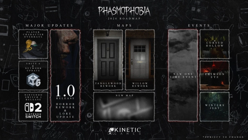 Также в 2026-м Phasmophobia игра получит обновлённый движок и доработанный сетевой режим, который станет более плавным. Плюс ко всему — переработанные версии Tanglewood и 13 Willow Street, а также вернувшиеся сезонные активности Cursed Hollow, Crimson Eye и Winterʼs Jest.