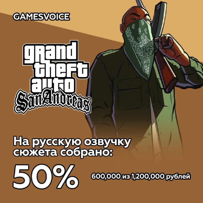 На русскую озвучку сюжета GTA: San Andreas студией GamesVoice собрали больше 50%