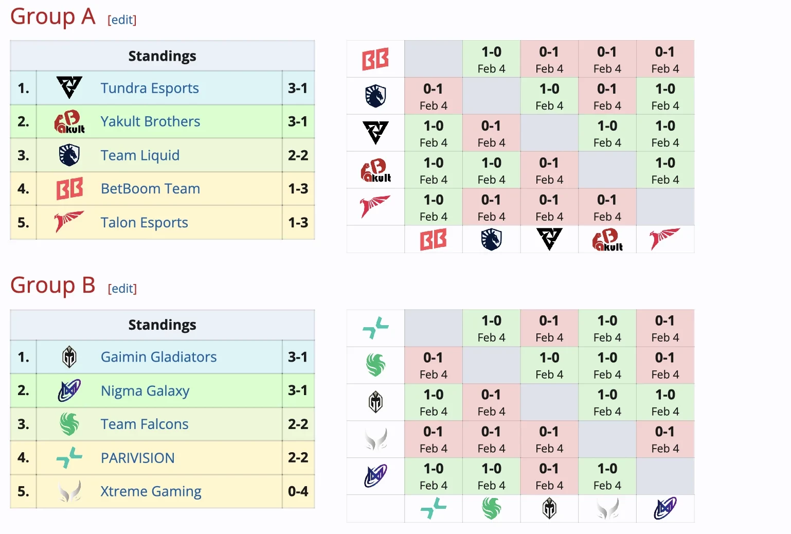 PARIVISION и Talon Esports, BetBoom Team и Xtreme Gaming заняли последние места в своих группах, поэтому начнут нокаут-стадию с первого раунда.