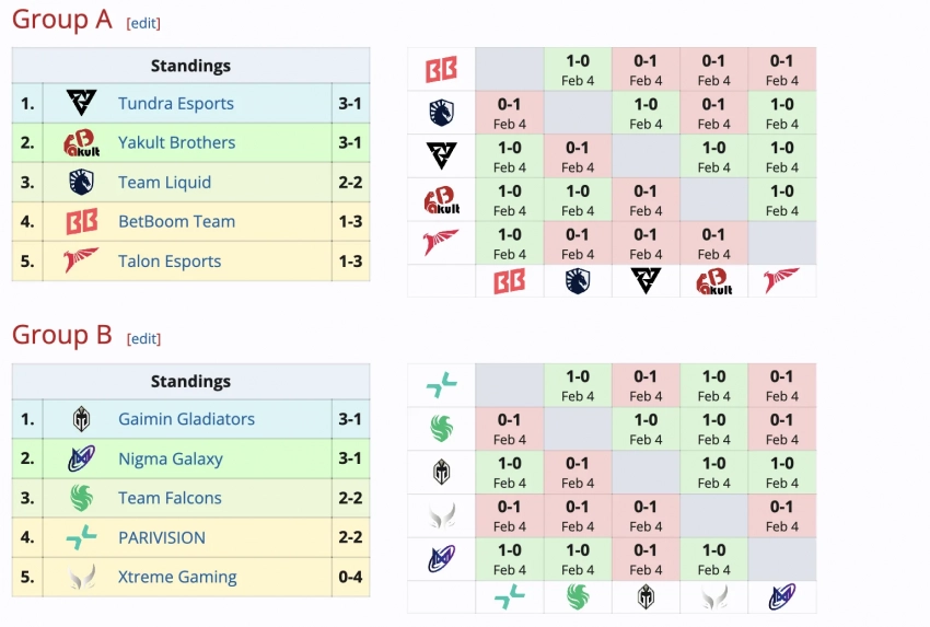 Победители этих пар встретятся с Team Liquid и Team Falcons во втором раунде. В третьем раунде коллективов будут ждать Nigma Galaxy и Yakult Brothers. Дошедшие до полуфинала встретятся с Tundra Esports и Gaimin Gladiators.