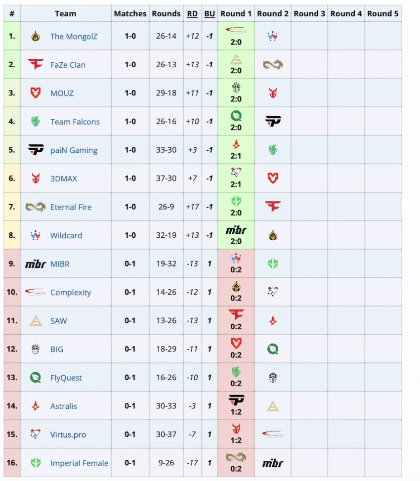 Со второго раунда победители играют с победителями, а проигравшие с проигравшими. Затем восемь лучших составов пройдут в плей-офф.