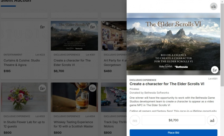 Как утверждается в аукционе, «эта уникальная возможность позволит вам увековечить себя в одной из самых ожидаемых видеоигр всех времен». Анонс The Elder Scrolls VI состоялся ещё в 2018 году на E3, и её релиз ожидается либо в 2026 году, либо, как предполагает Фил Спенсер, в 2028 году.