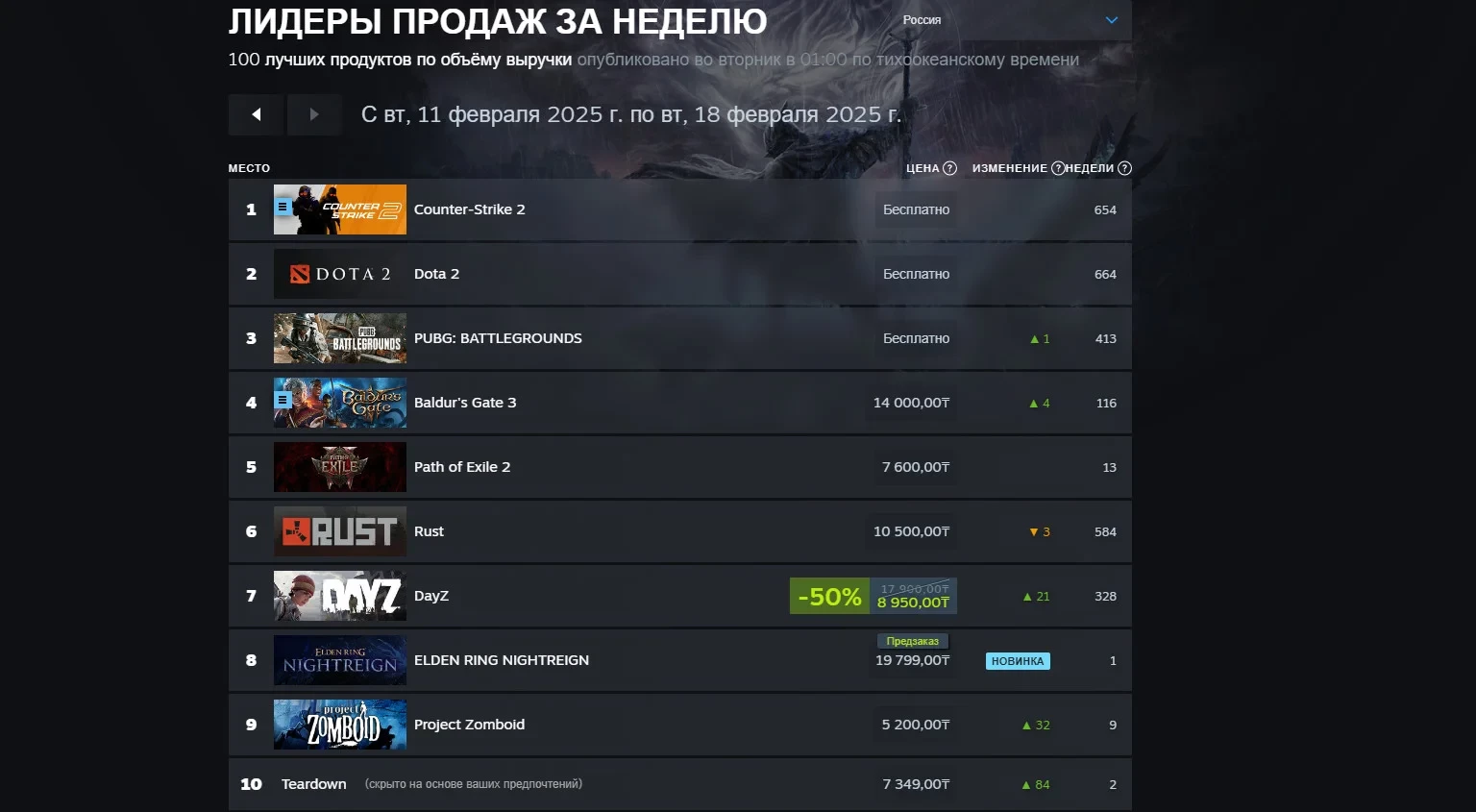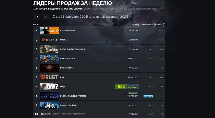 Топ продаж игр в Steam по выручке с 11 по 18 февраля