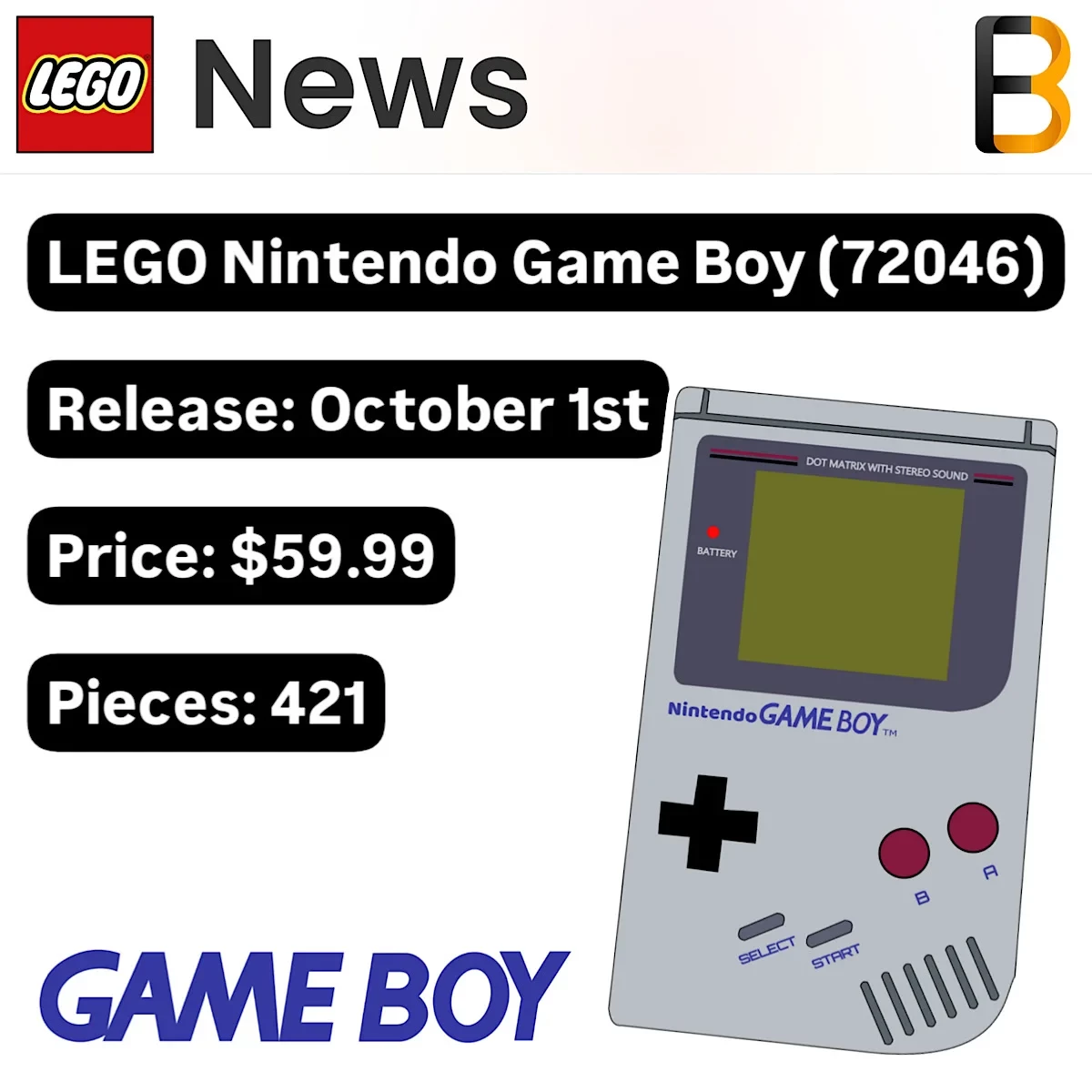 Набор Game Boy будет включать 421 деталь, что делает его компактным по сравнению с масштабным набором Lego Nintendo Entertainment System (NES), который содержал 2646 деталей и даже имитировал игровой процесс. А будет ли обладать подобной функцией Lego Nintendo Game Boy?!