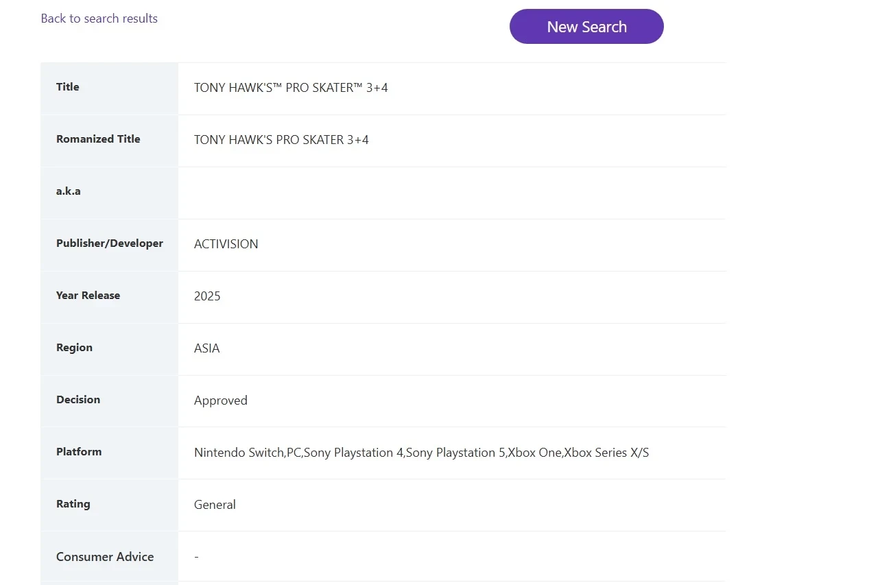 Tony Hawkʼs Pro Skater 3+4 выдали возрастной рейтинг в Сингапуре с релизом в 2025 году