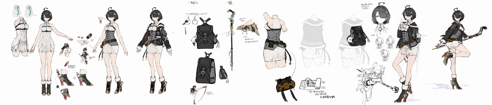 Речь идет не о внедрении свежих тенденций. Даже если сейчас передовые технологии кажутся странными, я верю, что через два-три года они станут общепринятыми, и это чувство пропадёт. Поэтому дизайн нашей игры включает некоторые тенденции, которые с сегодняшней точки зрения могут показаться несколько устаревшими. Если бы мы попросили Бенитаму нарисовать персонажа, одетого по-модному, я не думаю, что дизайн получился бы таким, как планировалось. Наша идея заключалась в том, чтобы Бенитама создал фантастического персонажа, а затем мы бы сбалансировали его с современными тенденциями.