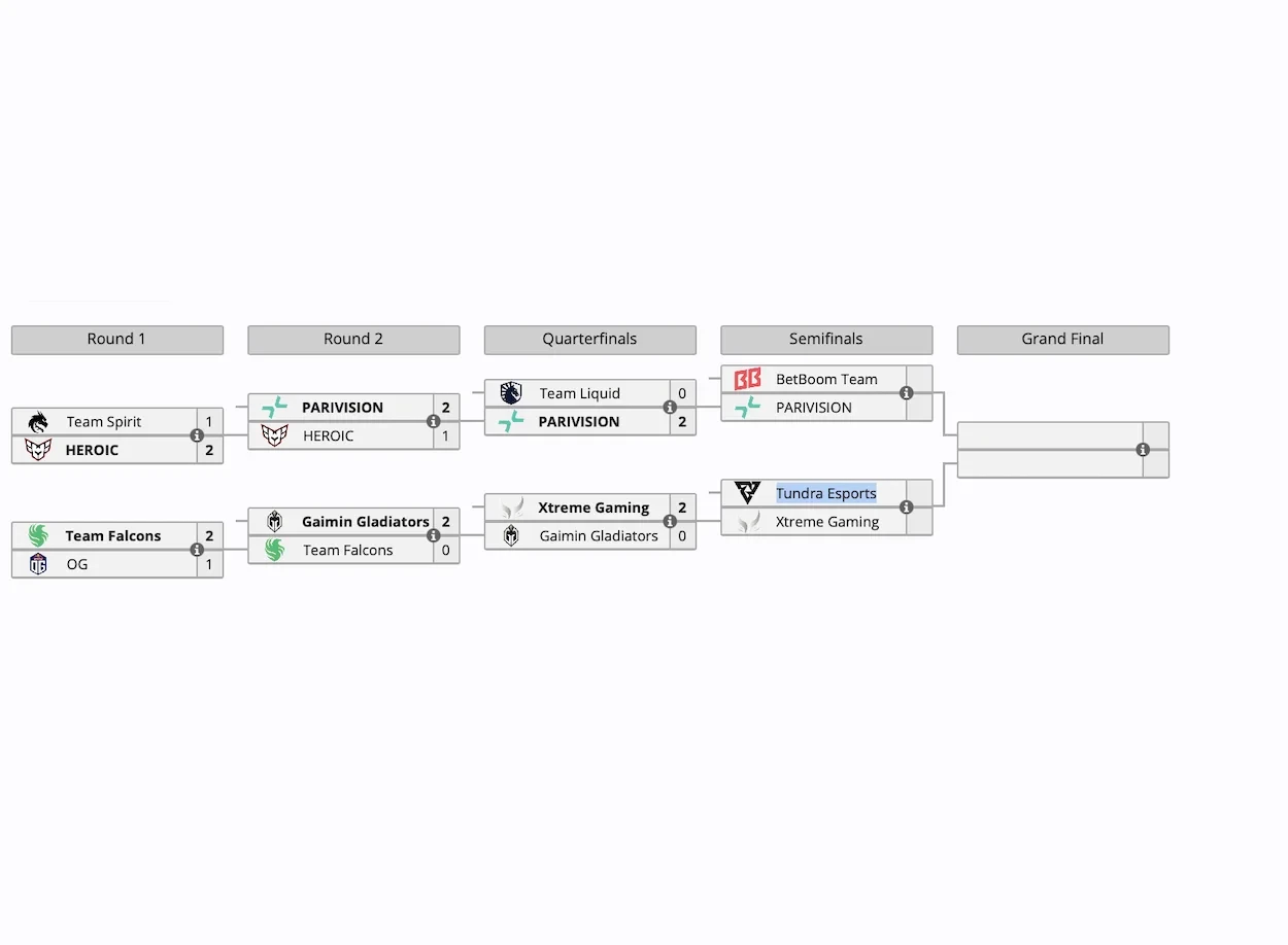 Победители прошли дальше по сетке. 30 ноября PARIVISION сыграет с BetBoom Team, а Xtreme Gaming сразится с Tundra Esports.