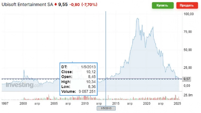 В последний раз подобные значения наблюдались только в 2013 году. А своего пика Ubisoft достигла в 2018 году, когда её акции стоили более 90 евро.