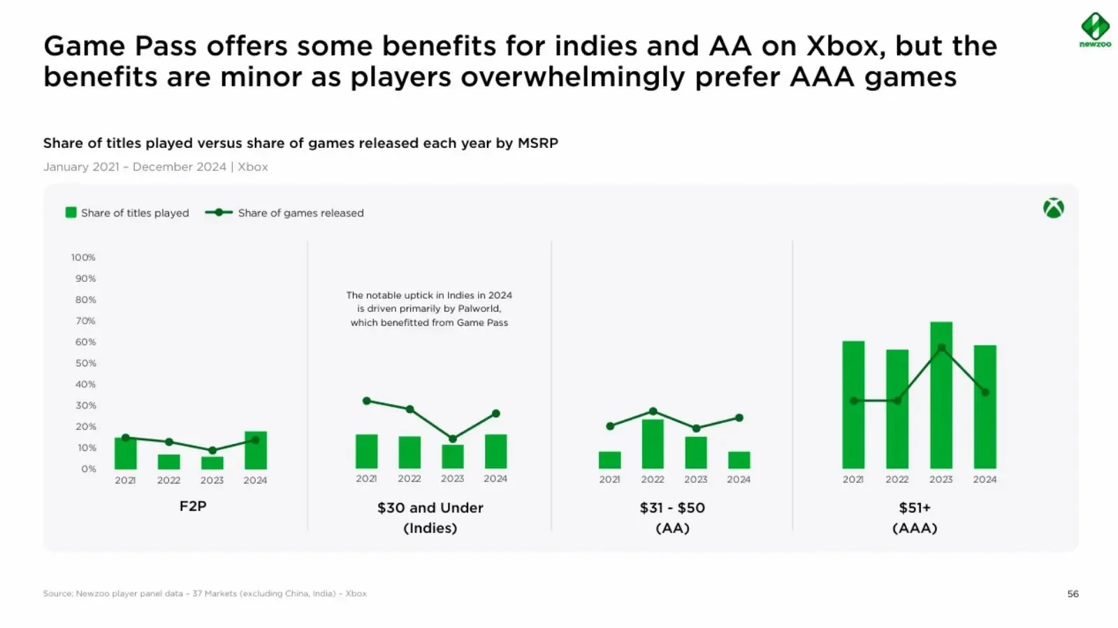 • На Xbox и Game Pass соотношение между разными категориями игр более гармоничное.