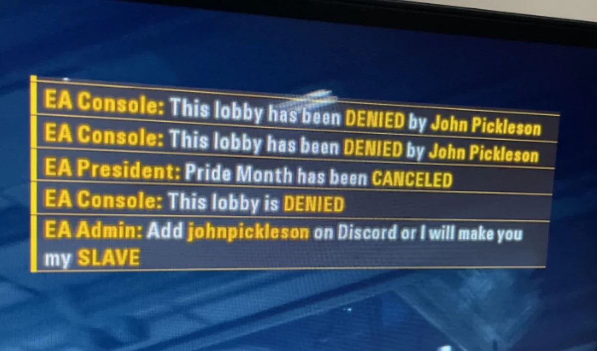 Скрипт отключает появление игроков — они просто не могут начать матч. Ранее для включения скрипта читеру нужно было самостоятельно подключиться к игре. Судя по всему, больше всего от действий хакеров страдают режимы Galactic Assault и Supremacy, а ещё во внутриигровых чатах публикуются оскорбительные сообщения. Отправить жалобу на читеров нельзя, ведь их имена скрыты в статистике матча.
