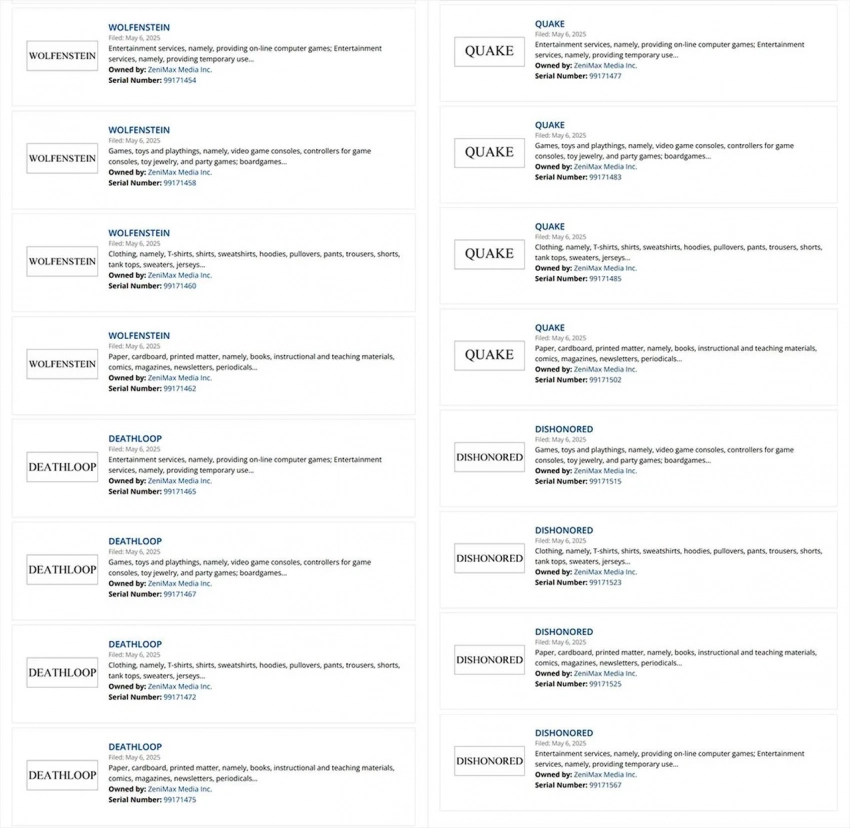 Отмечается, что ZeniMax не оформляла новых торговых марок с августа 2024 года. Остаётся надеяться, что глобальный пересмотр прав на популярные франшизы как-то связан со стратегиями их развития. Но пока что о новых играх серии Wolfenstein, Deathloop, Quake и Dishonored даже слухи не появлялись.