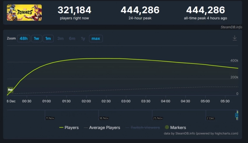 Шутер Marvel Rivals в духе Overwatch привлёк более 444 тыс игроков в Steam на пике онлайна