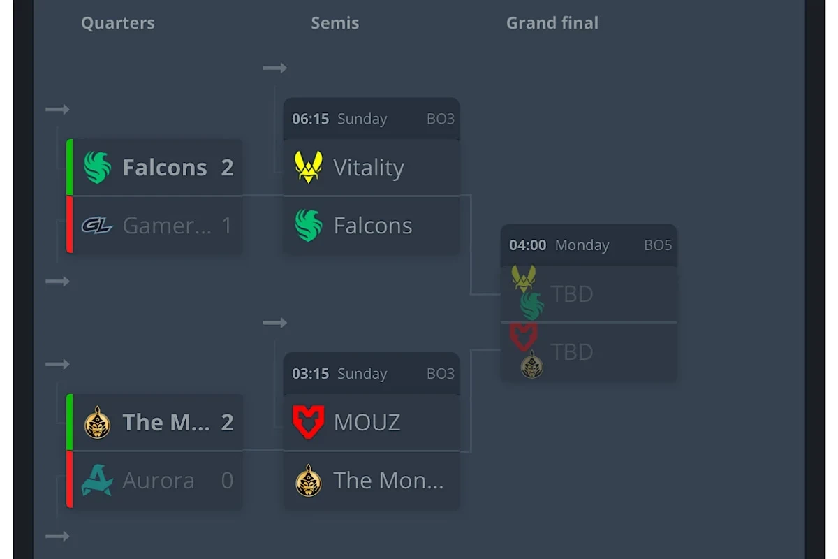 Обе проигравшие команды — GamerLegion и Aurora Gaming — завершили выступление на 5-6 месте, получив по 12,5 тыс долларов. Общий призовой фонд соревнований составляет 300 тыс.