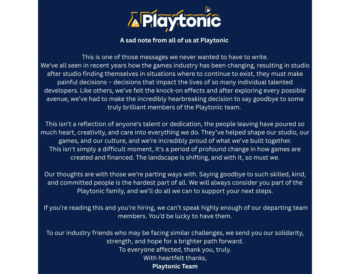 Руководство Playtonic констатировало, что в последние годы игровая индустрия неуклонно меняется, и отдельным студиям и компаниям тоже приходится меняться вместе с нею. И когда встаёт вопрос самого существования студии, иногда приходится принимать болезненные решения, расставаясь с частью команды.