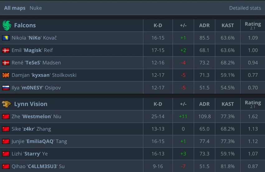 Falcons, занимавшие второе место в списке фаворитов после Vitality, теперь сталкиваются с мрачной перспективой вылета на стадии 2. Кроме поражения от Lynn Vision, команда Дамьяна «kyxsan» Стойковски уступила в матче против B8 со счётом 8:13, что делает их положение на турнире особенно сложным.