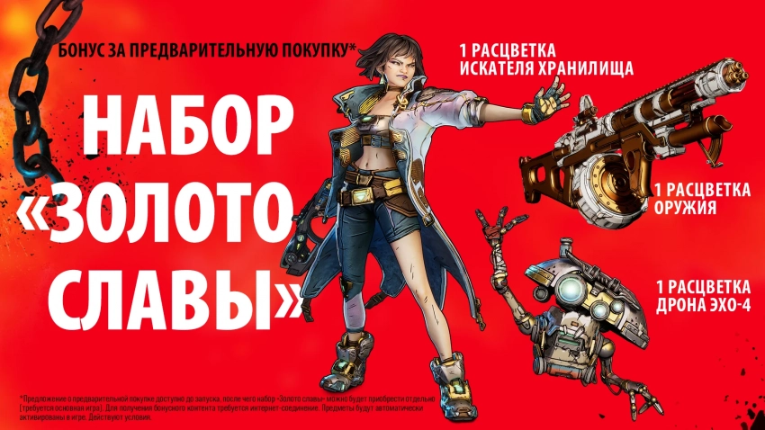 До момента релиза 12 сентября покупка любого издания даст игрокам дополнительный бонус: набор «Золото славы», в который включены расцветки Искателя Хранилища, оружия и дрона ЭХО-4. После выхода игры этот набор можно будет при желании купить отдельно.