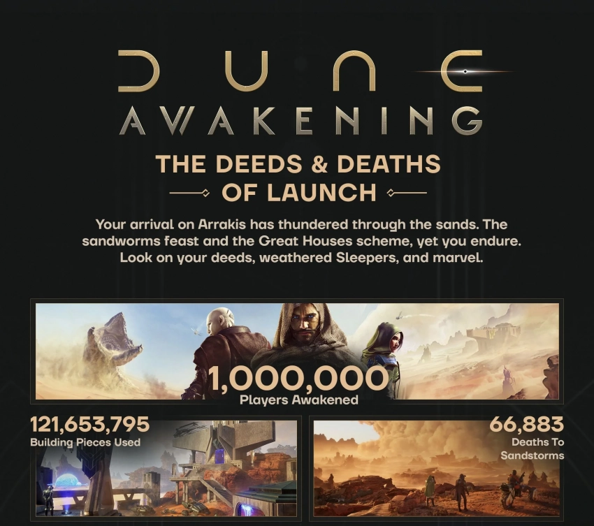 Купить Dune: Awakening можно за 2990 рублей, игра сейчас получает 84% рекомендаций в Steam. По данным SteamDB, в онлайне постоянно находится около сотни тысяч игроков.