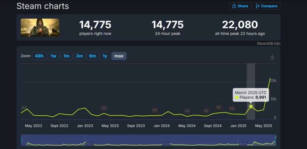 В обновлённую Death Stranding играло свыше 22 тысяч человек на пике в Steam — новый рекорд
