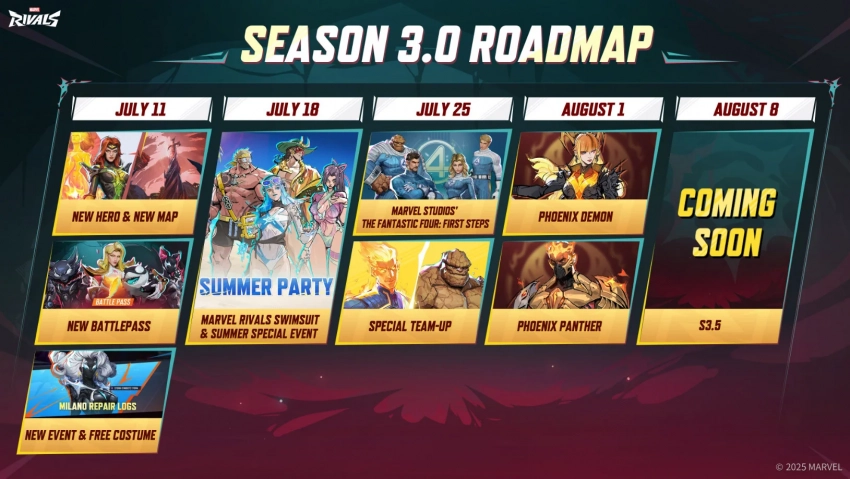 18 июля магазин Marvel Rivals ждёт пополнение обещанными бикини-скинами. На постере, изображённом на дорожной карте, видно новые наряды Псайлок, Луны Сноу, Локи и Тора. Тогда же начнётся особое летнее событие, детали которого пока неизвестны.