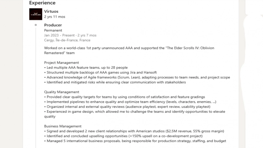В сервисе LinkedIn некоторое время назад нашлась ещё одна подсказка. Как оказалось, нарративный дизайнер и ведущий сценарист Virtuos с апреля 2025 года работает над побочными квестами для дополнения к Cyberpunk 2077. Эта информация тоже вскоре была удалена из профиля.
