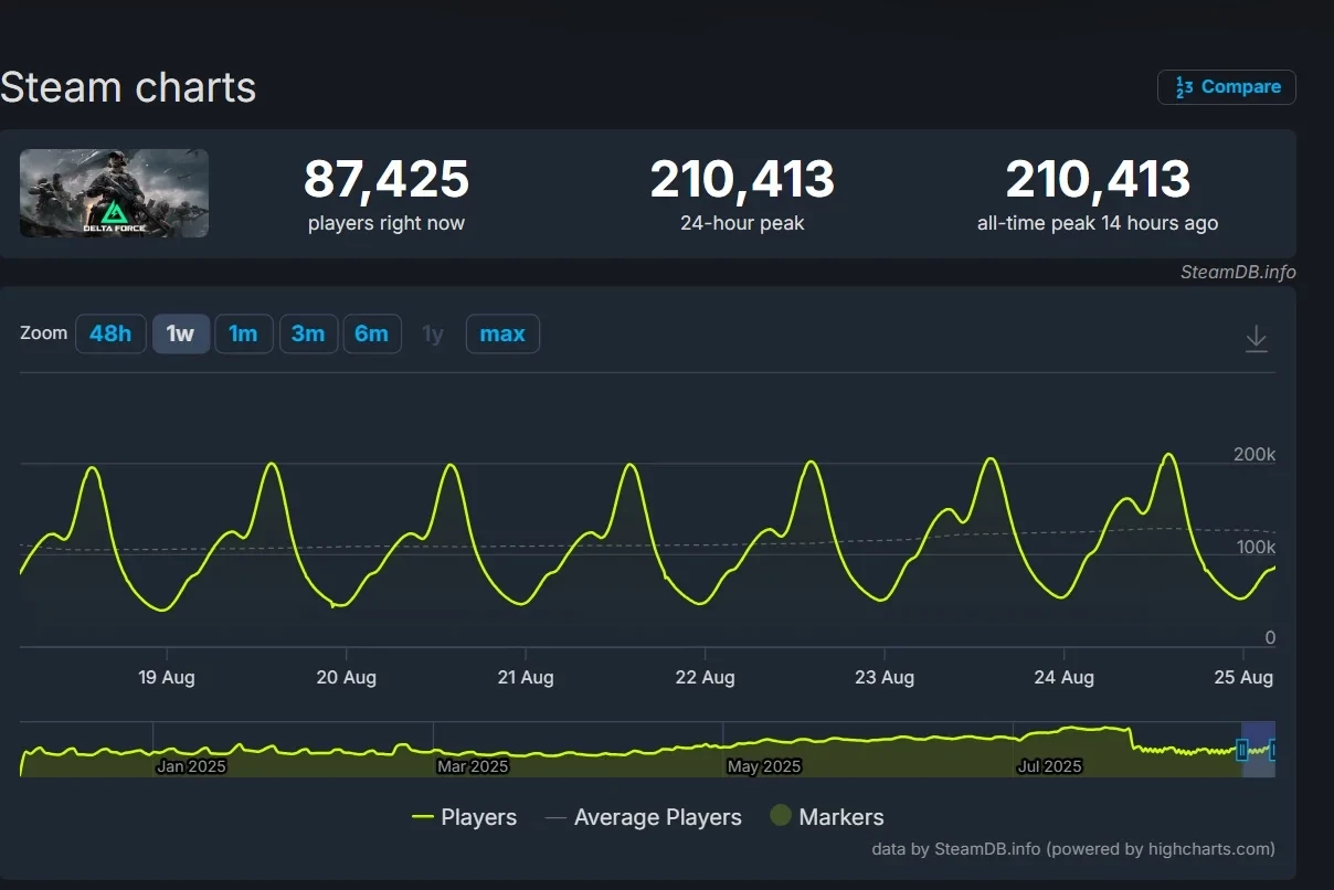 Главные новости » Эксклюзив » Пиковый онлайн шутера Delta Force в Steam превысил 210 тыс игроков одновременно