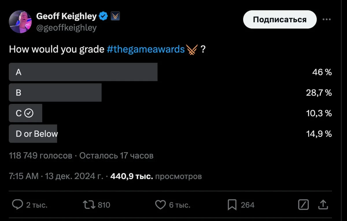 Главные новости » Эксклюзив » Почти половина зрителей The Game Awards 2024 осталась довольна церемонией