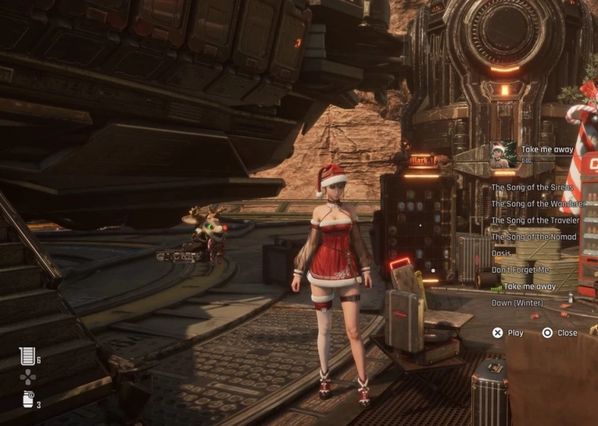 Также в лагере получится услышать праздничную расслабляющую музыку, а сама Ева сможет приодеться в костюм в стиле Санты с красными тонами. Дополнением к образу послужат и другие косметические предметы, включая серёжки. Причём нарядить можно и дрона — он будет летать с маской в виде оленя с гирляндами на рогах.