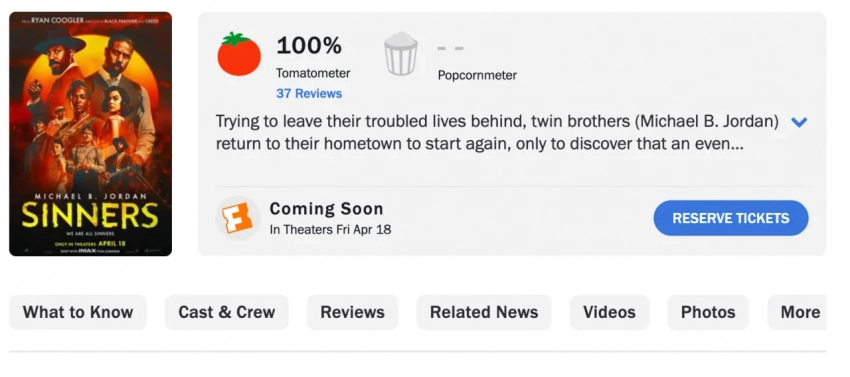 Вампирский хоррор «Грешники» автора «Крида» получил высочайшие оценки критиков