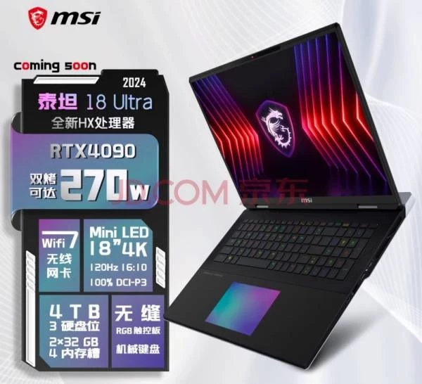 MSI выпустит сверхмощный игровой ноутбук TITAN 18 HX с Core i9-14900HX, GeForce RTX 4090 и блоком питания на 400 Вт