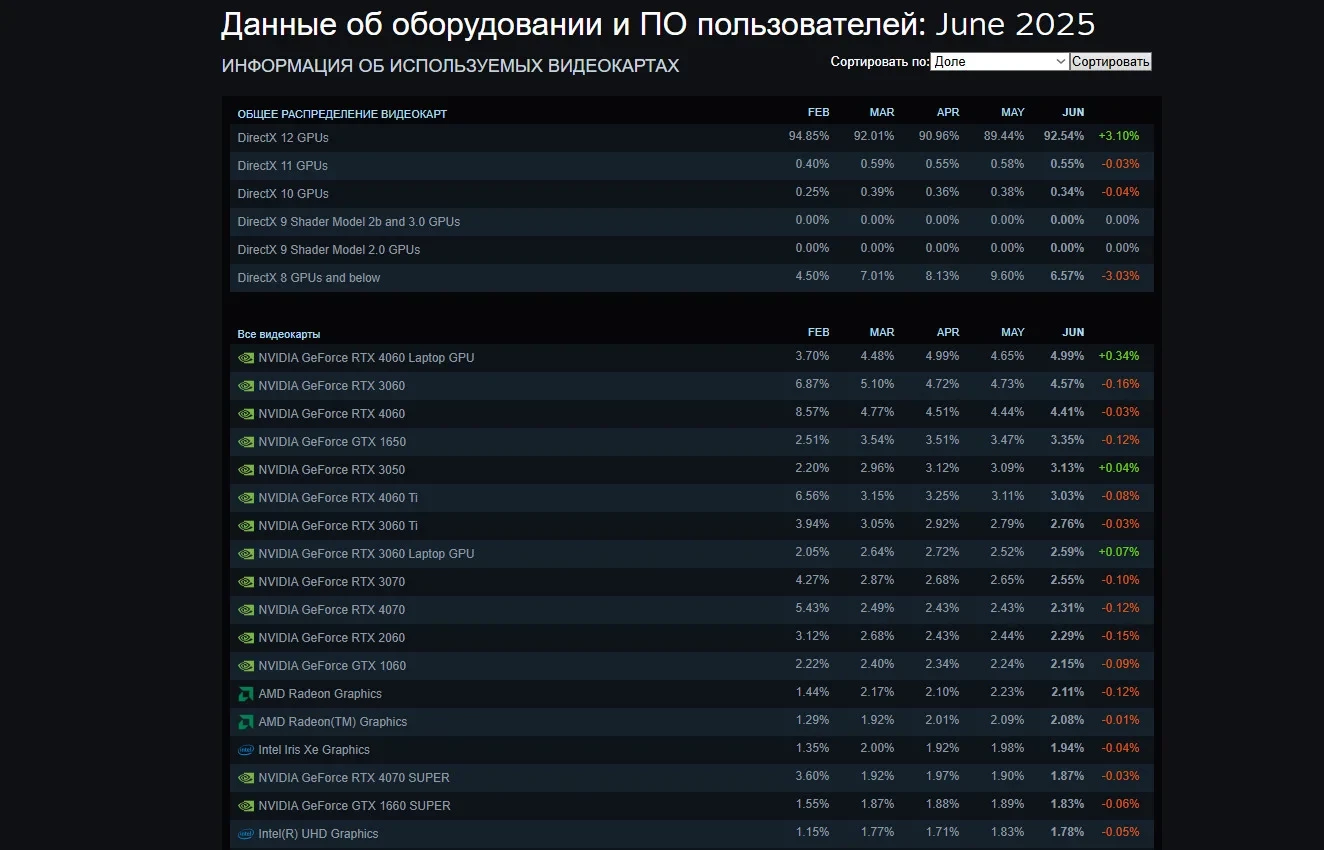 Статистика видеокарт