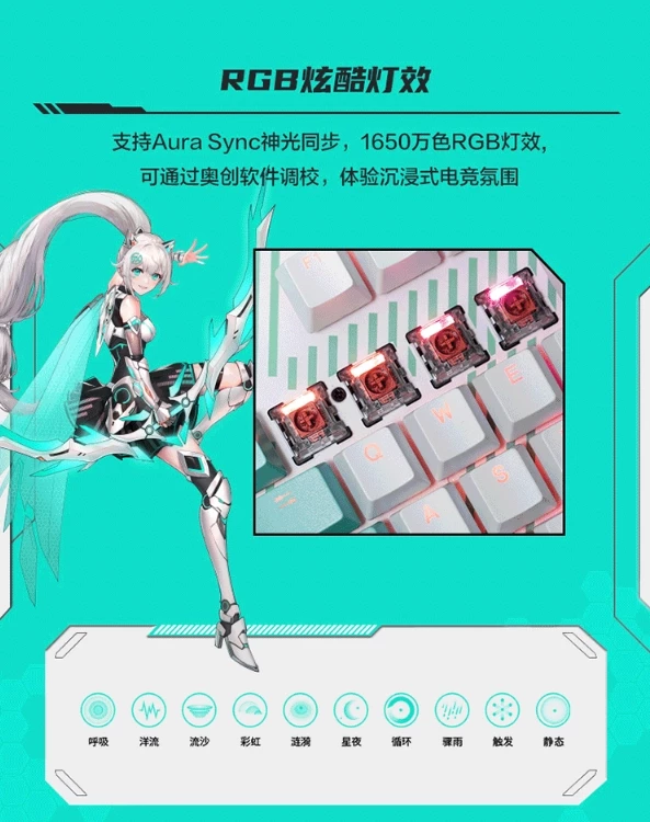 Чтобы клавиатура служила долго, в ней используются оптико-механические переключатели которые выдерживают до 100 миллионов нажатий. Это гарантирует надёжность устройства даже при интенсивном использовании. Кроме того, клавиатура поддерживает функцию полного переключения клавиш и защиту от ореолов, что позволяет точно регистрировать нажатия во время игровых сессий. Вы можете выбрать модель с красными переключателями для линейных нажатий или с синими — для тактильного набора текста и лёгкого щелчка. Модель TX98 обладает высокой степенью защиты от влаги и пыли, благодаря классу водонепроницаемости IP57. Это делает её надёжным выбором для использования в различных условиях. Для минимизации вибрации и шума в клавиатуре используется уплотнительная конструкция с звукопоглощающими накладками и дополнительными стойками.