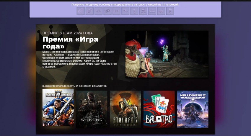 S.T.A.L.K.E.R. 2, Black Myth: Wukong и Balatro могут стать «Игрой года» на Премии Steam 2024