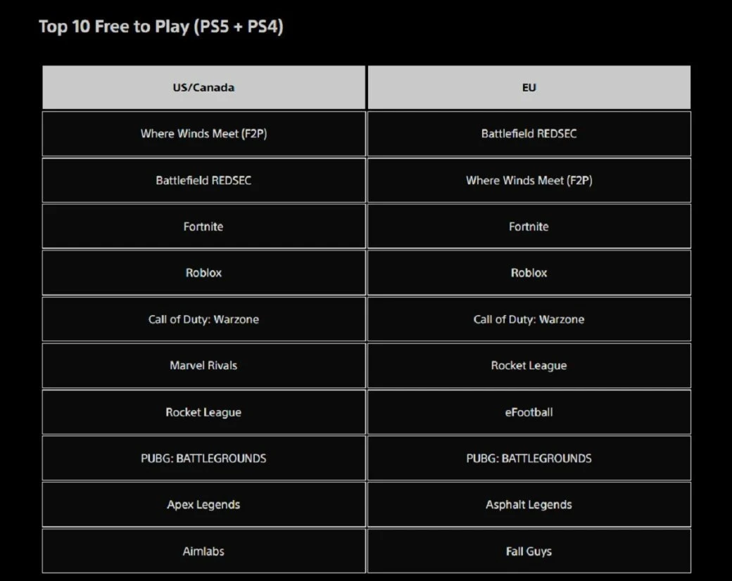 Топ загружаемых условно-бесплатных игр на PS4PS5 в Европе, США и Канаде в ноябре