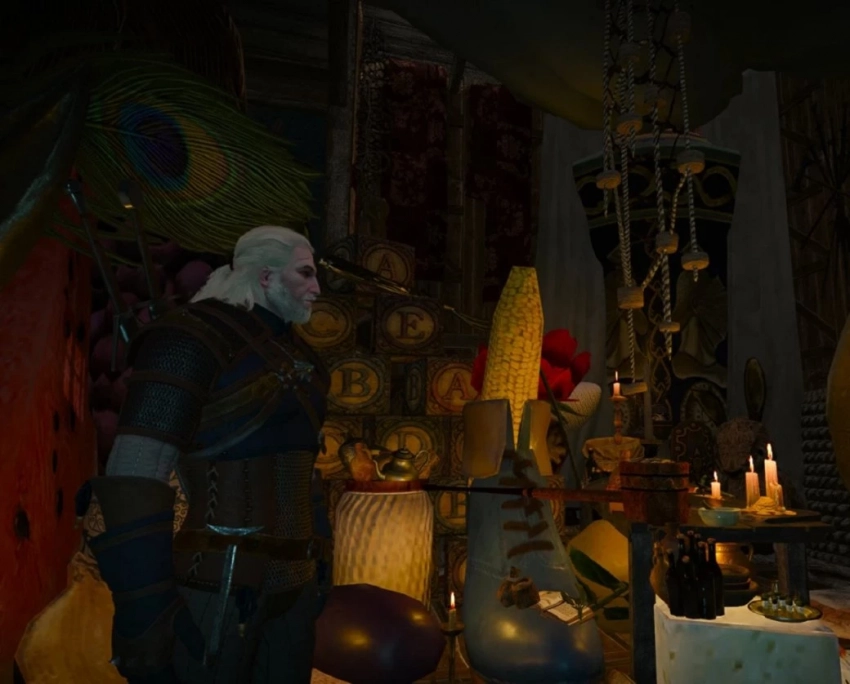 Именно тогда Геральт попадёт в украшенный домик в польской деревушке. Заняться тут будет чем. Можно расположиться у гигантского камина и наблюдать за огнём, либо же заняться паркуром по сыру, мебели и элементам декору, по сравнению с которым игрок кажется мышкой. Однако на чердаке скрывается нечто жуткое, поэтому для ведьмака найдётся работёнка.