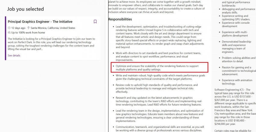 Речь идёт об открытой позиции главного графического инженера, в обязанности которого среди прочего будет входить — внимание — работа над «оптимизацией и масштабированием функций рендеринга для поддержки нескольких платформ и настроек качества».