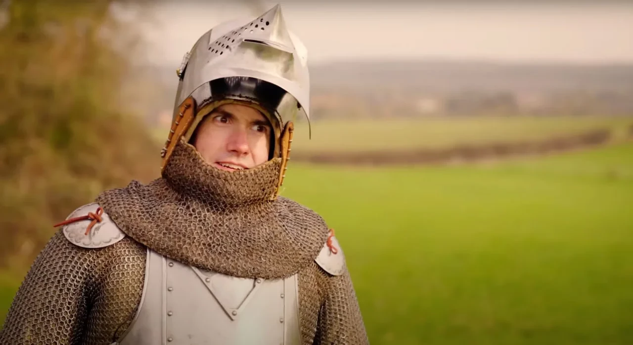 Напоследок герой сюжета «пережил атаку» рыцарей на лошадях, признавшись, что почувствовал себя «нервно» на фоне приближающихся «врагов».