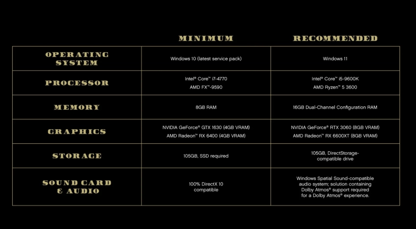 Исключительно на PC появятся новые функции трассировки лучей, вроде глобального освещения — на максимальных настройках графика должна выглядеть лучше, чем на консолях. Также можно будет использовать апскейлеры AMD FSR и Nvidia DLSS 3. А загрузки ускорит технология DirectStorage. Увы, за это придётся заплатить изменёнными системными требованиями.