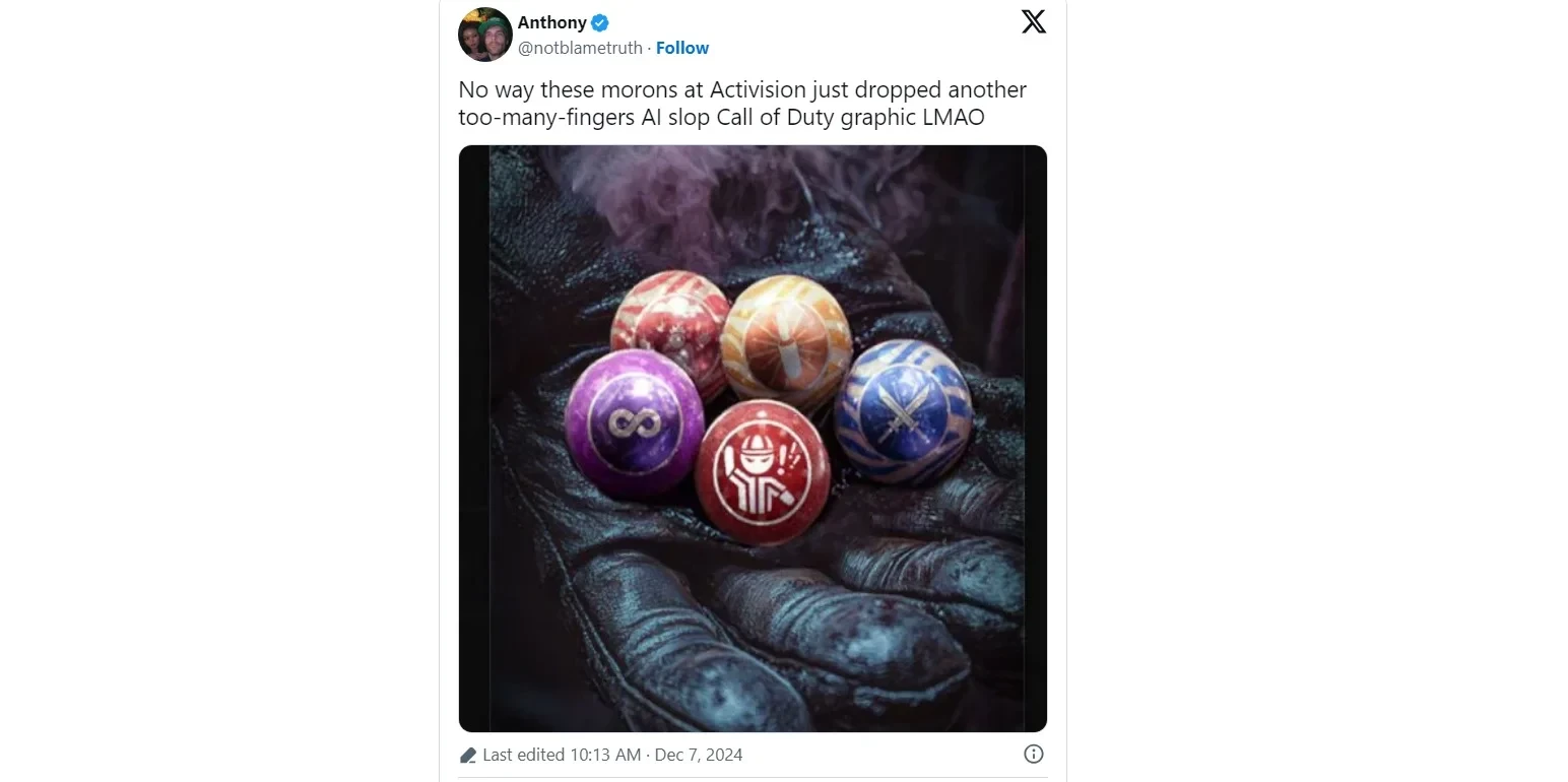 Фанаты Call of Duty уже обвиняли Activision и Treyarch в “бездушном” использовании ИИ в прошлом. По старинке их сразу выдавали 6 пальцев на одной руке.