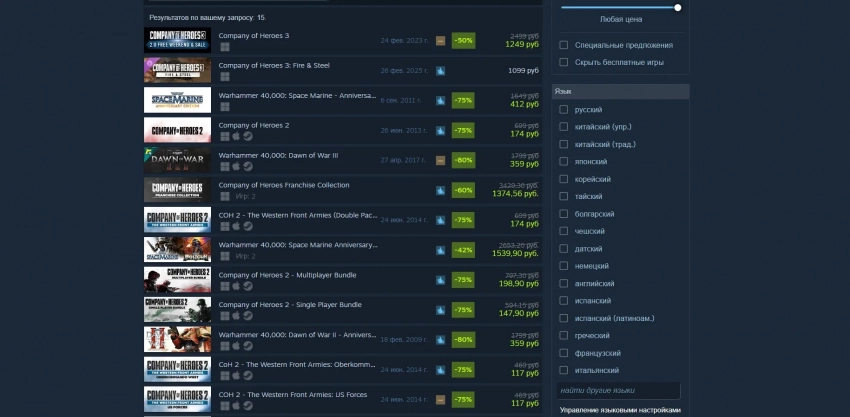 Авторы Company of Heroes 3 и первой Space Marine вернули ряд своих игр в российский Steam
