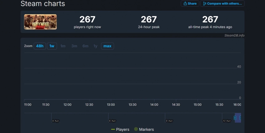 Пользовательская оценка Hollywood Animal ещё не сформирована — прошлого слишком мало времени с момента выхода. Стартовый пиковый онлайн составил 267 человек в момент написания новости, но он должен вырасти — как минимум геймерам нужно загрузить новинку.
