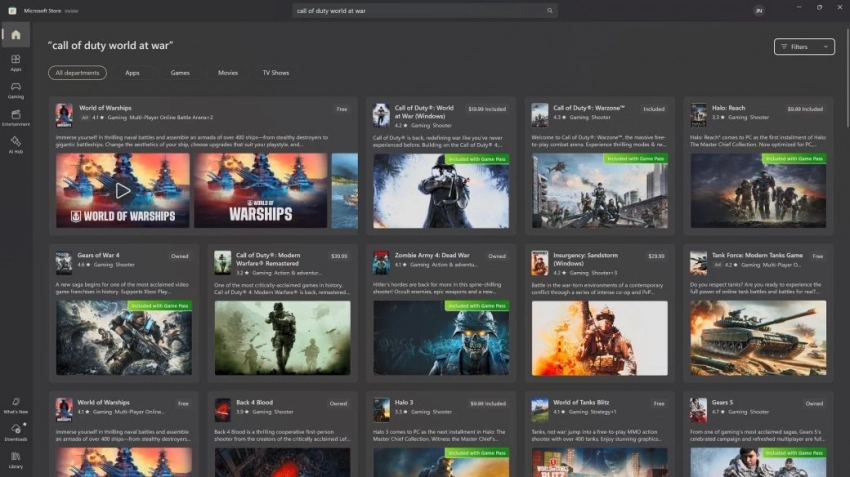 Каждая игра получила пометку Included With Game Pass (включено в Game Pass) и отображается с ней на странице поиска в магазине Microsoft. При этом в самом сервисе они недоступны.
