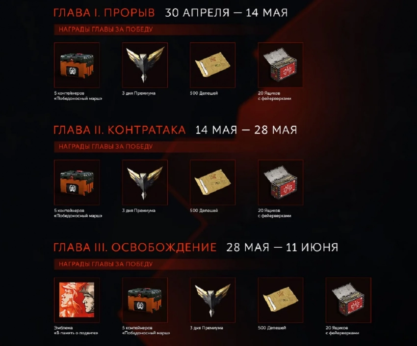 В конце этапа все, кто принял участие в наступлении, получат заслуженную награду. Всего «Общее дело» разбито на три главы: