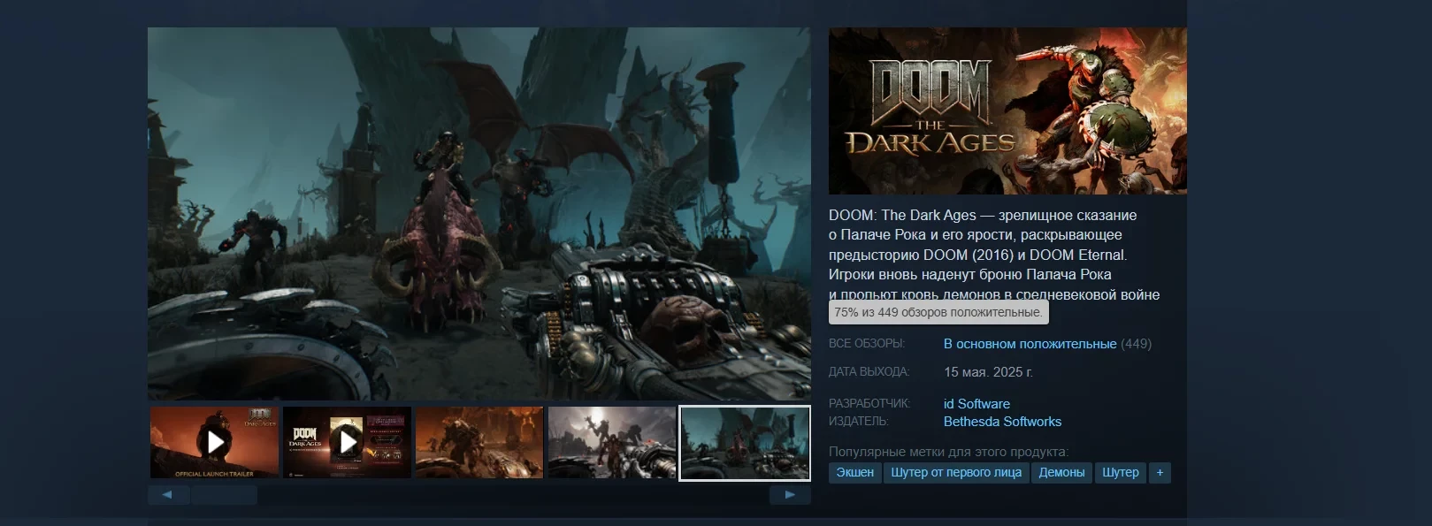 У DOOM: The Dark Ages в расширенном доступе «в основном положительный» рейтинг в Steam