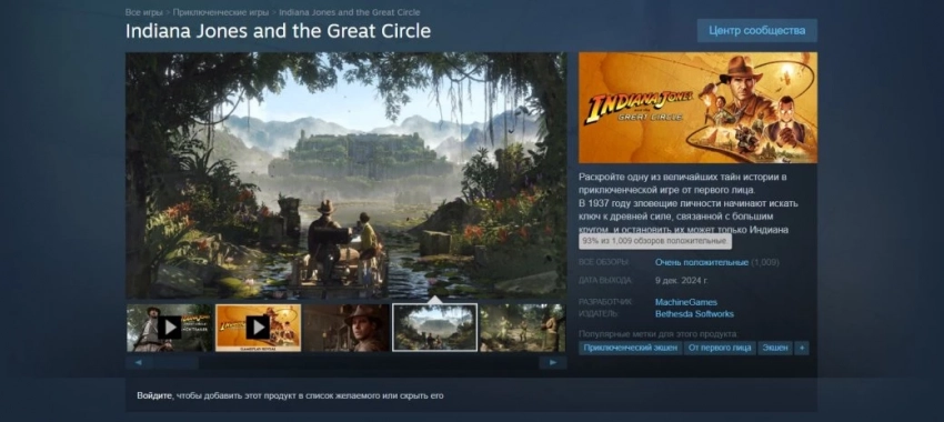 В Steam дела у Indiana Jones and the Great Circle выглядят следующим образом: