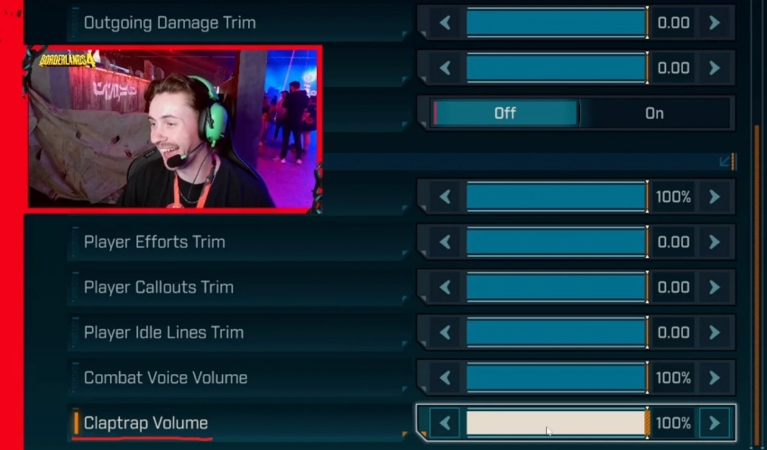 На скриншоте с опцией можно заметить, что игрокам Borderlands 4 не дано увеличить громкость Железяки — лишь уменьшить, отключить или выставить её на 100%. Однако нарративный директор продвигал возможность вдвое повысить громкость слов забавного робота. Руководство, по всей видимости, забраковало эту идею.
